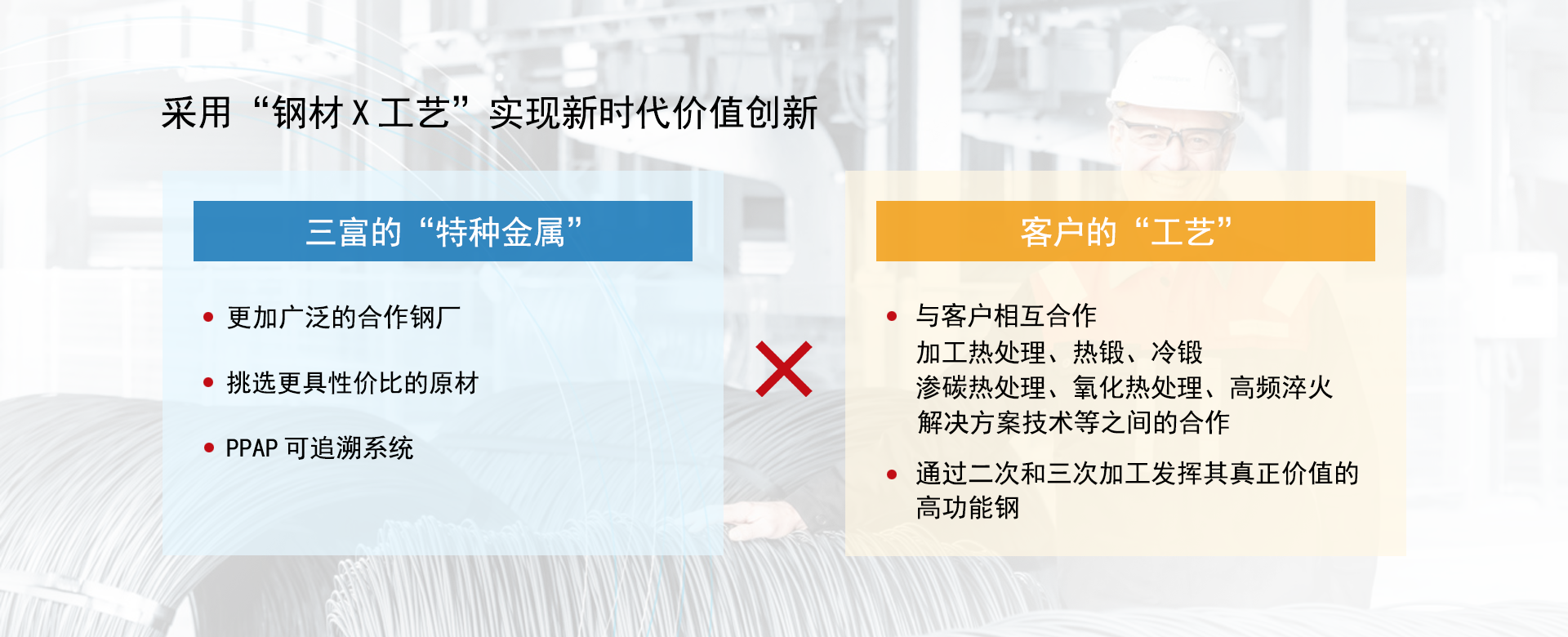 三富成立于2007年,位于中國上海市寶山區上海國際鋼鐵服務中心。由一群年輕的夢想家組成,他們專注于建立一個更具競爭力的金屬供應鏈。努力為中國和世界的制造企業提供更具成本效益的原材料和獨特的技術服務。如今,三富已成長為金屬材料流通領域較為專業的服務提供商之一。三富目前活躍于全球金屬制造業的多個領域。可靠的產品解決方案、完善的服務網絡和標準化的過程控制系統受到全球眾多用戶的青睞,成為眾多用戶首選的金屬...